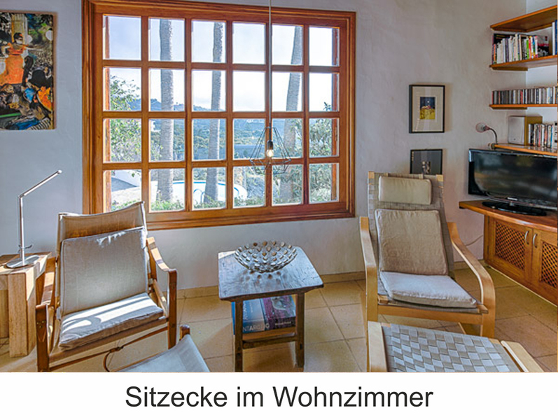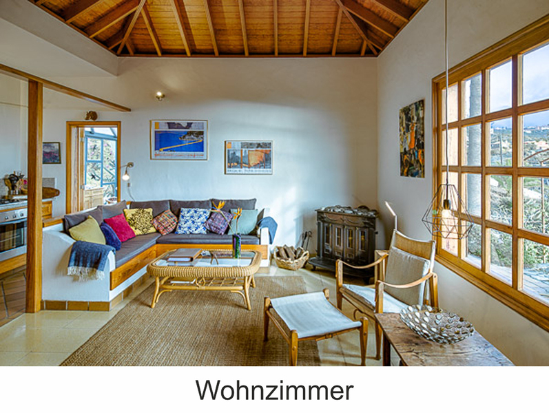 Im Wohnzimmer gibt es einen Kaminofen, deutsches TV mit (fast) allen deutschen Programmen, sowie eine Hifi-Anlage und zwei gemütliche Sitzecken. Eine kleine Auswahl an Büchern und Bildbänden steht Ihnen, wie einige Musik CD´s, selbstverständlich zur Verfügung. Die offene, voll eingerichtete Küche mit Geschirrspüler und Backofen komplettiert das Angebot. Das Haus ist sehr persönlich und liebevoll eingerichtet.
