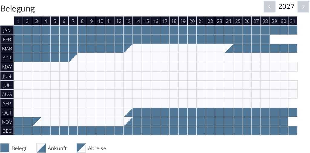 Tagespreise zzgl. 9,-€ pro Vermiettag für die Endreinigung. Irrtum und Änderungen vorbehalten.