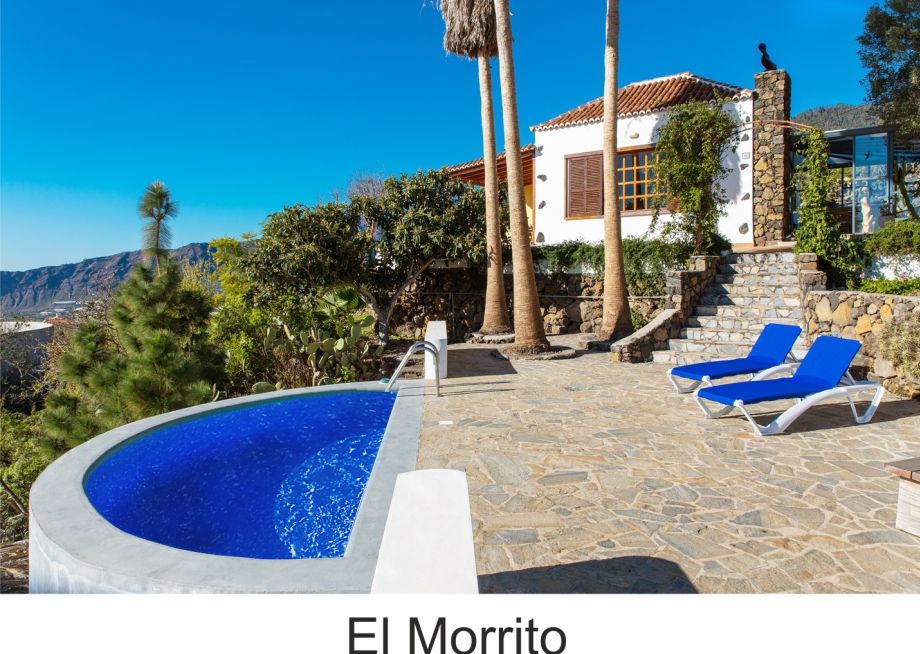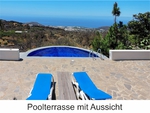 Ein bevorzugter Sonnenplatz ist die große Terrasse vor dem halbkreisförmigen Wasserbecken (2,5 m Radius) direkt am Hang. Unter Palmen genießt man einen zauberhaften Blick zum Atlantik und in die
